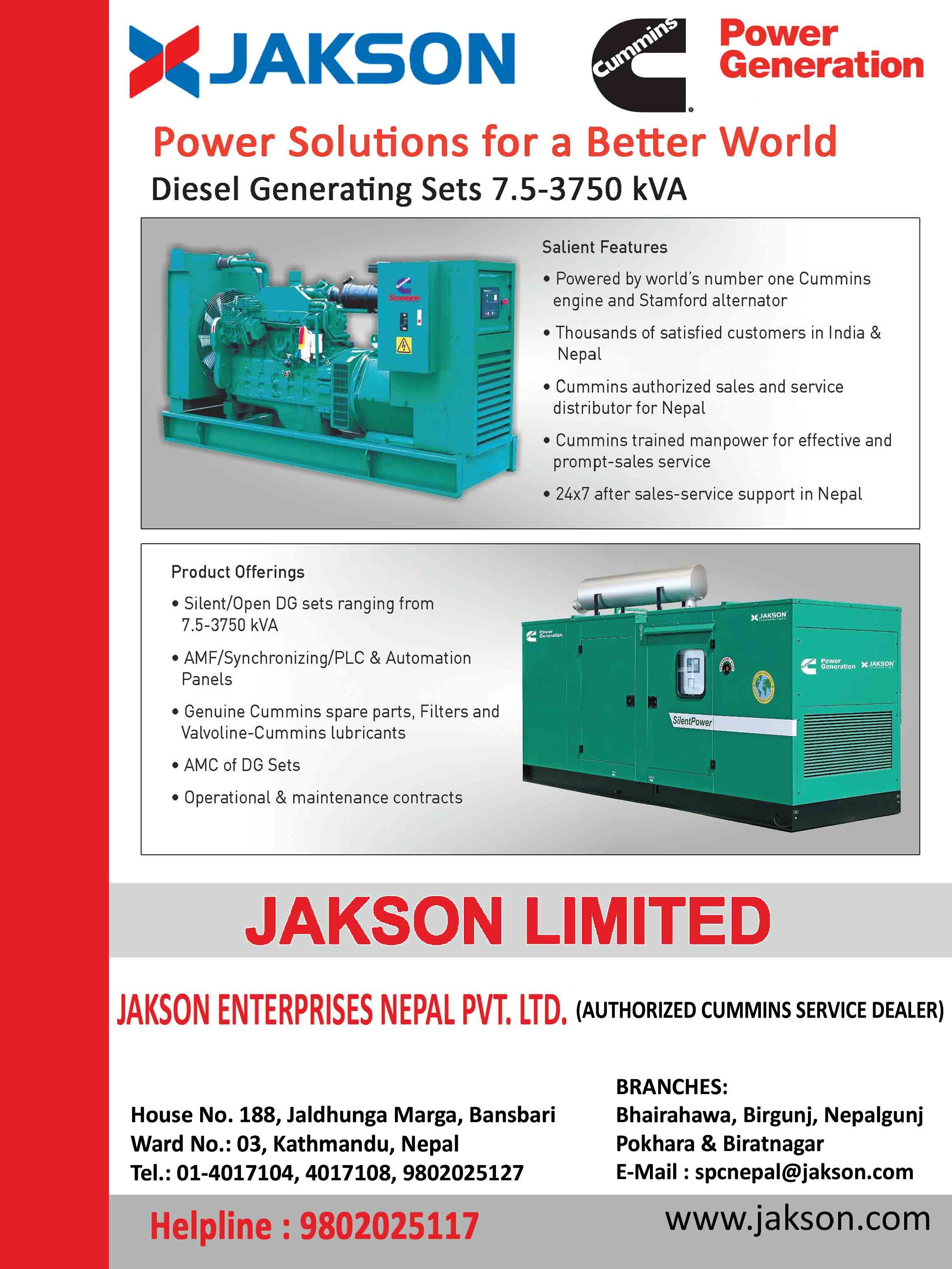 | Description | :POWERGEN & DISTRIBUTION Cummins Diesel Gensets Diesel Power Plants Global Training Center Parts Distribution & Services Business Query Jakson, Generators, Cummins Generators Jakson Generators Generator Dealer in Nepal Generator Dealer Generator Price |